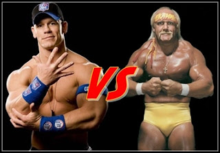 Alright, here it is. With the money Scott pays me I was able to purchase a machine that brings different Worlds, Universes, and all that good business together. So, I’ve brought together the years 1987 and 2013. For WrestleMania, it’s John Cena vs Hulk Hogan. Now, the question of course is who wins, but I’m asking for both levels.