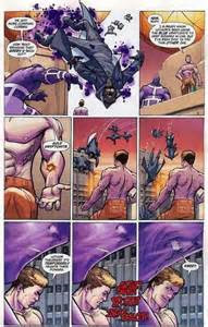 The criminals heat vision the hell out of the daily planet and just as Superman is pulling the jacket apart to reveal the S he is stomped from behind by Non, the brute of the three criminals. Being shoved through three buildings and into the ground of the park he rises up and punches Non. Non simply spits out a tooth and pushes Superman into the ground, holding him there for Zod.