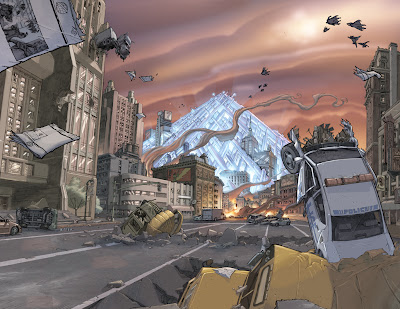 After a short conversation of Zod introducing himself, he punts Clark! Non flies in but is uppercut into the atmosphere as Zod goes into the test of strength with Kal son of Jor El. Suddenly countless space pods fall from the skies releasing even more Kryptonian criminals. Zod sends Kal into the Phantom Zone.
