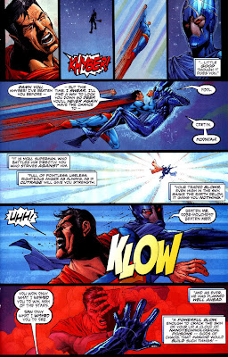 After a short conversation of Zod introducing himself, he punts Clark! Non flies in but is uppercut into the atmosphere as Zod goes into the test of strength with Kal son of Jor El. Suddenly countless space pods fall from the skies releasing even more Kryptonian criminals. Zod sends Kal into the Phantom Zone.