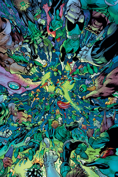 The battle takes place in space and the Supermen take a hold of Prime and fly him into the remnants of Krypton that is really just floating Kryptonite rocks. Prime laughs as he points out that the Kryponite of this universe doesn’t hurt him. They then fly him through a red sun and land on the planet that is a Green Lantern itself Mogo!