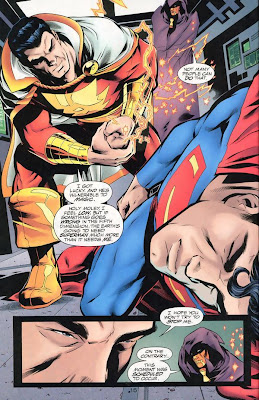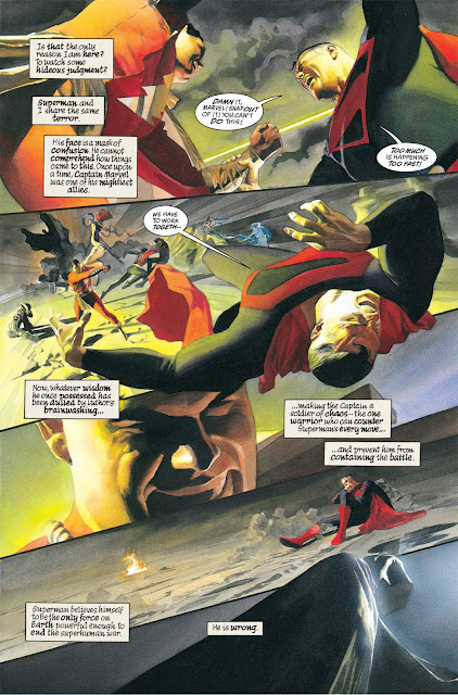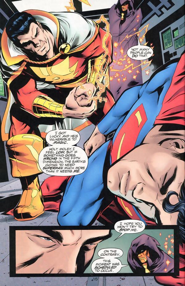 Heat vision doesn’t work so Superman is off to take out the bomb when Billy transforms back into Captain Marvel and makes the right decision in the end as he stops the bomb with his lightning.