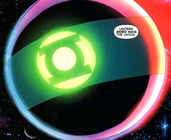 The battle takes place in space and the Supermen take a hold of Prime and fly him into the remnants of Krypton that is really just floating Kryptonite rocks. Prime laughs as he points out that the Kryponite of this universe doesn’t hurt him. They then fly him through a red sun and land on the planet that is a Green Lantern itself Mogo!