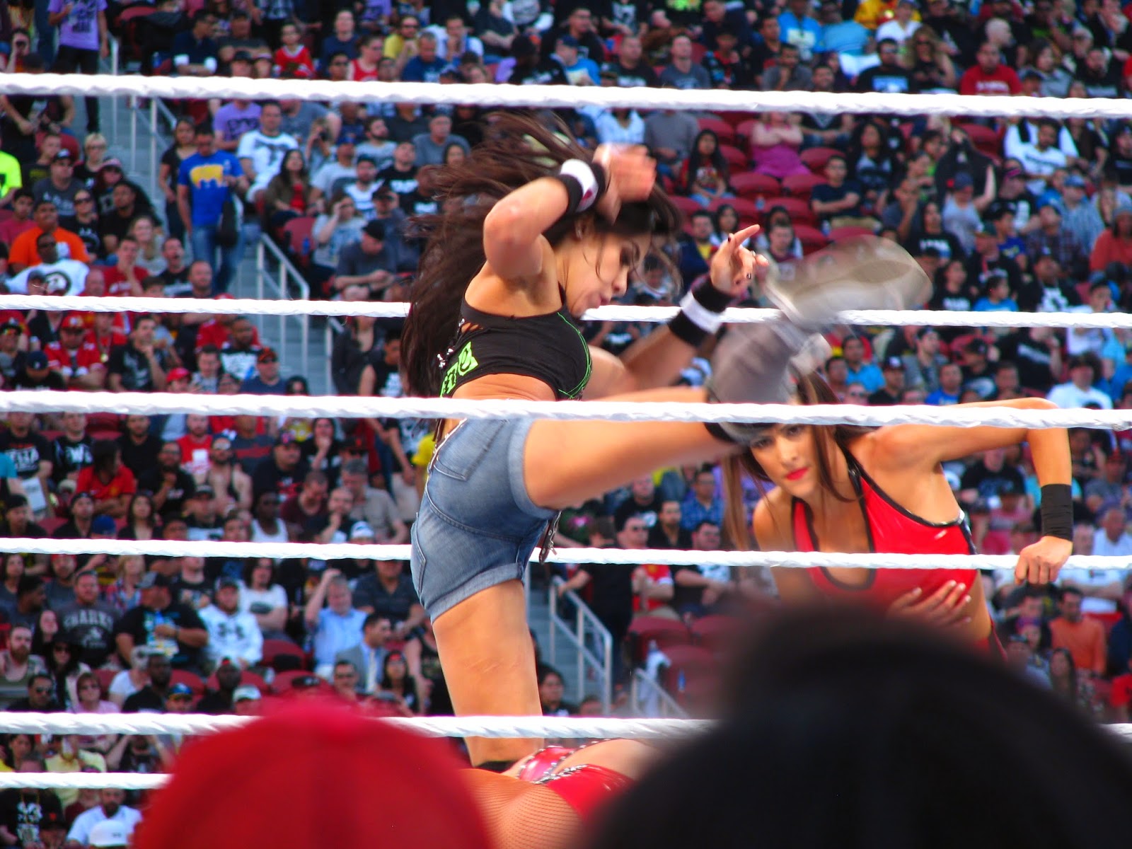 adjacent corner. Bray hits a running corner clothesline and can’t get