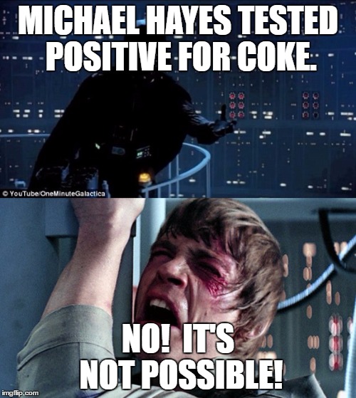 – So after some investigative journalism, it turns out that Michael Hayes was suspended for…COCAINE!