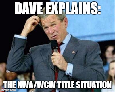 – OK, better grab some coffee or something here. The basic gist is that New Japan recognizes Fujinami as the NWA World champion, whereas WCW recognizes Flair as the WCW World champion. This wouldn’t be controversial, except that for the past two months the NWA and WCW titles have been separate entities that have both happened to be held by Ric Flair at the same time and represented by the same belt. When the Japanese TV show aired by the match, they just ignored all the controversy and played it like Fujinami is the new champion, end of story. However, Flair left with the title and everyone in the papers freaked out about it. The WCW version is that Fujinami threw Flair over the top rope and the WCW ref didn’t want to make the call right then for fear of a riot, and that the Japan referee had no business making the count for Fujinami. But that contradicts the earlier Sting-Muta match in the show, which saw one guy throw the other over the top rope without a DQ, so now Jim Herd is clarifying that the Flair match was under AMERICAN rules and thus over the top is a DQ. However, fans are so pissed about the screwjob finish that New Japan is actually going to pursue a (worked) court case against WCW to “get the belt back” because otherwise they’ll look super-weak in the eyes of the fans. In reality, everything that happened was supposed to happen, although New Japan felt bullied by WCW into the ridiculous finish because they didn’t want to jeopardize their relationship.