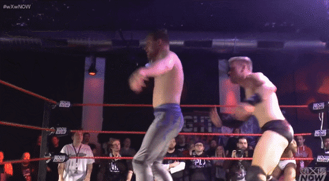 WALTER and Jakobi (whose odd couple team were a Shotgun highlight last year) recap the women’s division and the weirdness of the six-month rookie becoming the first wXw Women’s Champion. Nice way to get exposition out the way while having serious WALTER interact with slightly-mad Jakobi. Oh and we get this relatable GIF.