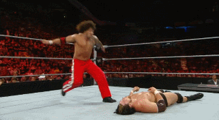 Morrison and Matt start off and it’s won by Matt who tags in to Finlay who takes Morrison into the corner who tags in Chavo. Rest of the baddies are able to attack Fit in the corner but he powers out and goes back to beating up Chavo. Guerrero tries a dive on the outside but Finlay smothers him with the cover and Hornswoggle takes out Bam Neely because Bam Neely sucks.