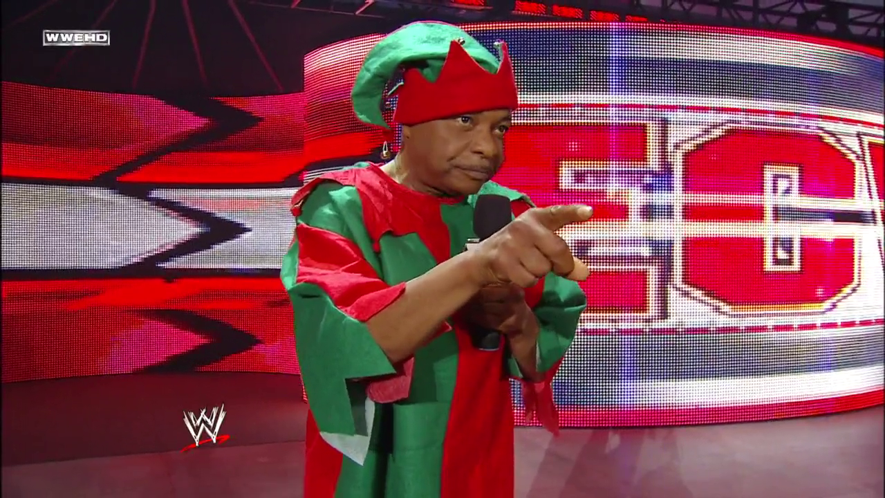 DJ Gabriel and Alicia Fox dance backstage but get scared by Mark Henry dressed as Santa Claus. Henry performs a very impressive poem about splattering Hornswoggle and yet again makes it hard to boo him.