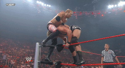 RAW REBOUND: Triple vs. Randy Orton in a No DQ Wrestlemania Rematch, ending with everyone involved in the six-man match at Backlash running in and Orton getting a RKO-powered pin after Batista accidentally speared Shane. Weird to think those four guys would wrestle ten years later at Wrestlemania.