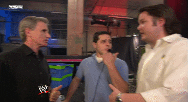 Backstage: Some backstage guys are talking until they hear a scream and see some woman taking a back bump off a ladder.
