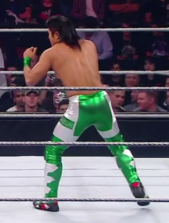 Nikki & Bella are here as guest ring announcers because they’re still having to invent roles for them to justify paying. Yoshi is wearing his Misawa tribute tights, the only tights strong enough to prevent ripping.
