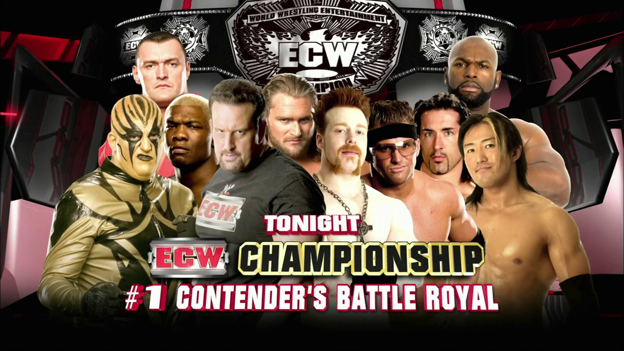 Tiffany starts the show but thankfully the Roundtable interrupt before everyone switches over to Farscape re-runs on Sysy +1. Regal says she looks bloody lovely tonight and is doing a wonderful job as ECW GM and the crowd hates this glorious display of sucking up. Tiffany explains she banned The Roundtable from ringside because she didn’t want any interference and Regal COMP-LETEL-Y understands…but thinks it’s fair he gets another title shot anyway. Tiffany says no and there’s going to be a Battle Royal to decide who the new contender will be but Regal gets…