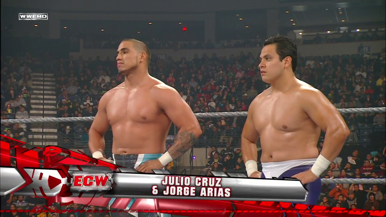 A.K.A. the future Super Nova and the future Hunico/Second Sin Cara. OH SHIT. The Dude Busters know they’re fucked if Shoot Cara gets in so they prevent Cruz from tagging out and put him away with a Powerbomb/Neckbreaker combo before running away and changing their address just in case.