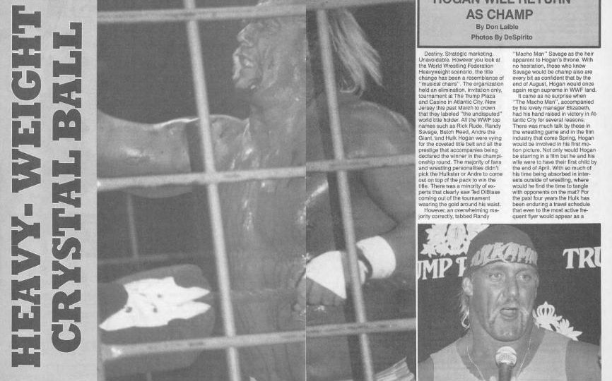 Next, an article about Hulk Hogan’s chances of regaining the WWF title by Don Laible. Laible said the majority of fans knew Randy Savage would win the tournament at WrestleMania IV. (They probably read WWF Magazine.) The same fans expect Hogan to win the title back by September. Most fans knew Hogan wouldn’t win the title in the tournament because he had a film deal lined up and baby daughter due by the end of April. Meanwhile, Savage has been wrestling Ted DiBiase. But it’s likely that whoever comes out on top of this feud will have a returning Hogan to deal with, and it’s unlikely either will be able to hold off the Hulkster.