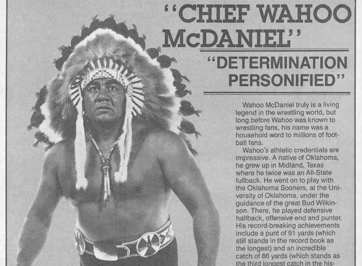 Next, an article about Wahoo McDaniel, a true living legend. What can you say about a man who once punted a football 91 yards? (Still the longest punt in Oklahoma Sooner history.) After becoming a star college football player, Wahoo went on to play in the American Football League, helping the Houston Oilers win the AFL championship in 1960. He went on to play for the Broncos, Jets, and Dolphins while also getting into professional wrestling. Eventually, he hung up his shoulder pads and dedicated himself full-time to the mat. These days he wrestles for the AWA and hopes to one day win the organization’s world championship.