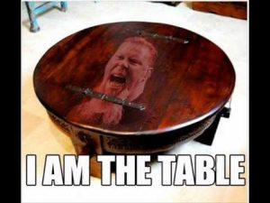 OK, so the Samoans are taking the place of the Skyscrapers, but in turn, this is not the Samoan Swat Team, because Samu quit the promotion and so we’ve got Fatu and Tama, aka the Samoan Savage. And they would be a real brother tag team, not like those other fake brother tag teams in wrestling. Even though they’re not billed as brothers. Fatu gets slammed by Reed to start, but comes back with a powerslam. They trade headbutts, but on the racial stereotyping scale that’s a stalemate. Good to know, for science if nothing else. Simmons gets a powerslam, but Tama no-sells it and goes up for a flying splash that misses. Simmons slams him for two and Reed comes in to stomp away, as JR notes “they giving no quarter and asking for none.” OK there Cowboy Bill, take it down a notch. Reed with a neckbreaker on Tama for two. Where’s the hyperactive time calls from Capetta now? We’re 5:00 legit into the match, he should be excitedly screaming that we’ve got a minute left! Doom double-teams Tama in their corner and Reed drops an elbow for two. And now, at 5:50, they call the 5:00 mark! This show is finding new and innovative ways to drive me crazier than I already am. Tama with a sunset flip for two and he blocks a bulldog from Reed, but Simmons cuts off the tag. Doom continues double-team in the corner, but Fatu gets a “hot” tag as the crowd does not give a shit and they all brawl. Fatu collides with Reed, however, Humperdink pushes Fatu over for the pin at 8:32. So not good. ½* So Doom finishes with zero points, which literally led to nothing in terms of consequences. In fact, they got title matches a few weeks after this. Real talk: Doom were already mathematically eliminated from the tournament before the match, so why not be creative and have them just go out and deliberately get DQ’d seconds into the match, so they can screw over the other team and not even give them a chance to get the 20 points? Plus as a bonus if you beat them down hard enough, you further screw up their chances of winning the tournament. Anyway, it’s now Steiners leading with 35 points, then Warriors and Samoans with 20 each and Doom finishing with the goose egg.