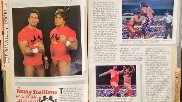 Next, Personality Profile profiles the Young Stallions, who always wore disturbingly tight trunks to prove they did not have small packages. We’re told Roma and Powers are developing and on the rise. (Well, something’s on the rise.) Roma says he knows things are only going to get harder, but he and Jim are ready for it, so bring on the stiff competition. (Well hung, guys… er… well done.)