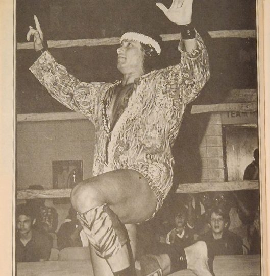Next, we learn about the departure of Warlord and Barbarian from the NWA. With Ivan Koloff, they were holders of the six-man championship and were signed to wrestle a number of scaffold matches against their arch-nemesis, the Road Warriors, throughout the summer. Then they just walked out of the NWA and sent their manager, Paul Jones, a telegram: “No way we’ll risk our careers on that scaffold. You don’t give a damn if we get hurt. We’ve taken orders from you long enough. We’ve decided to take a better offer in the WWF. May you rot in Hell forever.” Matt Brock reports that he was outside their dressing room a week before they quit and he heard them yelling. “They definitely were angry about the scaffold matches,” Matt says. “The big men didn’t want to risk life and limb falling from 25 feet in the air.” Warlord and Barbarian, who weigh in at a combined 655 pounds, may have a point. Scaffold matches, one of the most deadly ways ever devised to end feuds, seem better suited for lighter tag teams with better balance. “I’m generally considered to be a master at scaffold matches,” says Jim Cornette. “Smaller, more lithe competitors, such as myself, have an edge in these matches, and those two guys have a point. Could you imagine what would happen if one of those bruisers ever fell to the mat from 25 feet up? Ugh!” The disagreement with Jones over these matches was enough to send Warlord and Barbarian packing, and it also prompted a change in their attitudes. Their first appearance in the WWF saw them assisting Tito Santana in his war against Demolition. Jones, meanwhile, has rebounded with a 6’8 monster called The Russian Assassin, who will team with Koloff throughout the summer. But things in the Jones stable may never be the same. It was Jones who provided Warlord and Barbarian with the name The Powers of Pain. Nobody ever figured that the biggest pain would be suffered by Jones himself.