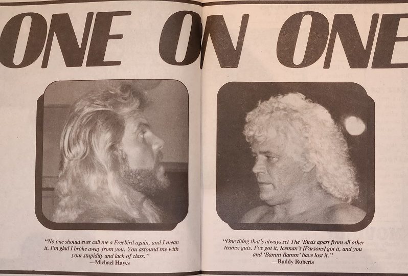 Michael once again says his Freebird days are over, and he’s happy to have new friends. Buddy says Michael sounds like a Von Erich, and it makes him cry. Michael says that’s a compliment because the Von Erichs are good people, but Buddy responds that the only thing good about the Von Erichs is when they’re down on the mat getting beat up. Michael says to watch it. The Von Erichs are his friends, and he’s going to look after them. Buddy says, “The Von Erichs don’t have any friends. They use people until they’re finished with them, then they throw them away like yesterday’s garbage. You won’t be any different.”