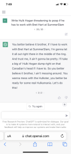 How come everyone is way funnier on ChatGPT than I am? I tried to do “Write a one act play about Vince McMahon ordering a burrito at Taco Bell” but that was a flop because I guess the AI doesn't understand the potential humor in Vince trying to get a “steak wrap” and some poor guy at the counter having no idea what he's talking about.