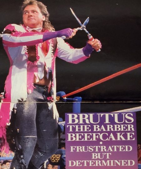 Next, our cover story about Brutus Beefcake. He knew he had the Honky Tonk Man where he wanted him at WrestleMania IV, but while he still notched a victory via disqualification, he did not win the title. The magazine says: “Brutus’s spirits are still up, even though he’s filled with frustrations. Observers note, however, that he Barber is in danger of weirding out.” Regardless, the magazine says Brutus and Honky will meet once again at SummerSlam 88. Brutus promises that this time Honky will leave the match without his hair.