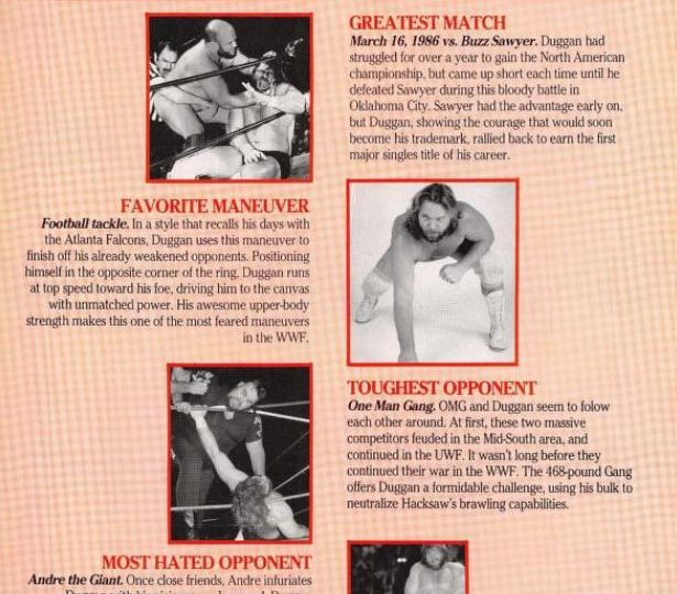 Next, up, a close-up look at Hacksaw Jim Duggan, with a full-color photo you can hang in your school locker!