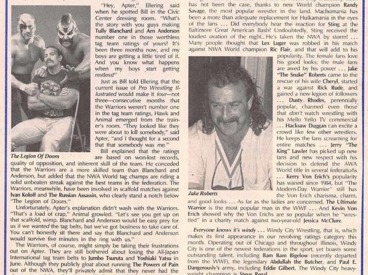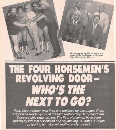 Next, our cover story. PWI notes that the Four Horsemen don’t seem to be a very stable stable. Ole Anderson was replaced by Lex Luger. Luger was replaced by Barry Windham. Will there be more changes? (Oh, come now. It’s not like anyone will be jumping ship anytime soon, right?) PWI notes there has been some friction within the group. “NWA fans have longed for someone to rid wrestling of the Four Horsemen. If the fans are patient, the Horsemen may simply self-destruct.”
