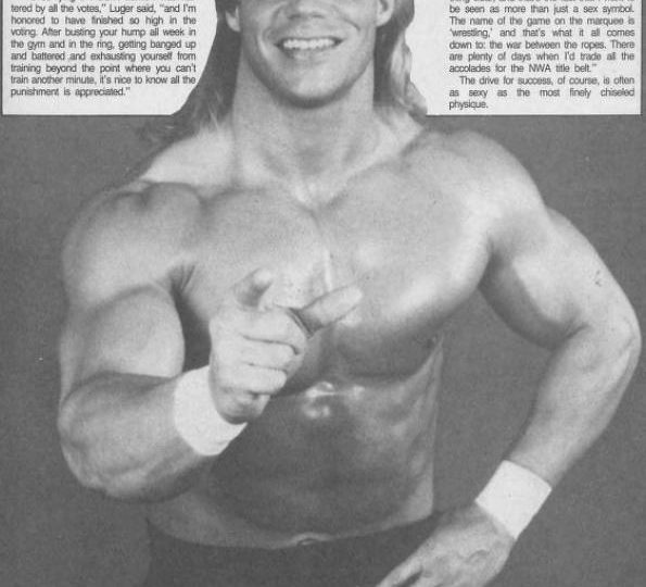 “Lex Luger doesn’t walk, he oozes. And when he rips his shirt off, I get weak all over.”