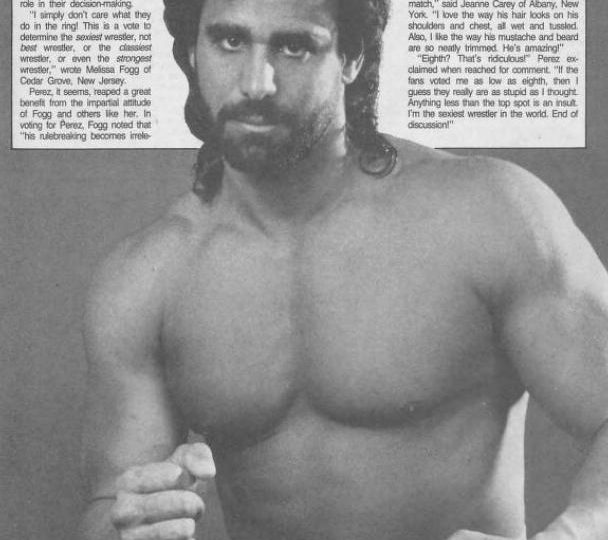 “Al Perez has great eyes and a great body. He’s not overly muscular, but he doesn’t have an ounce of fat on him, and he always has a great sweaty look after a match.”