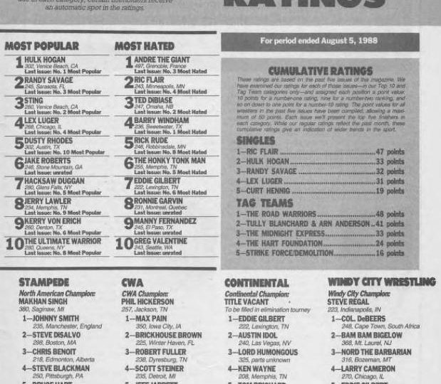 This week we look back at an issue of Wrestling Superstars that went to press in early August of 1988 and sold for $2.25 in the U.S, $2.95 in Canada, and £1.50 in the U.K. In this issue, we get the results of a “Sexiest Superstar” poll. But first, let’s get right to Ratings…
