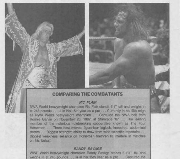 The dream match itself is described as two men putting on a wrestling clinic before Flair takes control, seemingly ready to put Savage away. But then Savage rolls up the NWA champ in a pinning attempt only for the Horsemen run in and break things up, getting Flair disqualified.