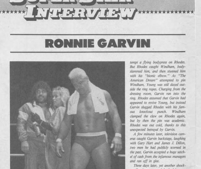 Next, an interview with Ronnie Garvin, who shocked the world by turning against Dusty Rhodes and helping out the Four Horsemen for a satchel full of cash before hiring Gary Hart as his new manager.