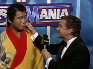 Master Fuji telling Alex Trebek what he’s going to do to his “Jap opponents” and Regis Philbin yelling “Toyota! Izzuzu! Columbia Pictures!” in an attempt to communicate with the SWS crew before squeezing their cheeks lets you know the level of importance this match had at the biggest show of the year. I’m impressed Tenryu gets to keep his SWS entrance music rather than getting stuck with the Orient Express theme. Demolition are two months away from leaving WWF forever to give you an idea where this is going. Kitao “the big fortune cookie” takes on Crush while the crowd go for a break after Savage vs. Warrior. I mean Nine Inch Nails couldn’t follow that so these guys have no chance. Crush works over Kitao thanks to Fuji’s sneaky cane shows as Heenan continues to think Kitao’s name sounds like “towel.” Tenryu gets a decent pop (all things considered) before missing his Blind Elbow and getting worked over by Crush. Kitao interrupts the Demolition Decapitation, letting Tenryu land the enziguri and powerbomb to end a completely nothing match. No-one mentioned the upcoming SWS show so I have no idea how this helped anyone.