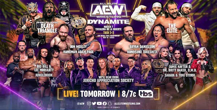 We’re in for a big show this week as things head back to Los Angeles. AEW knows how to bring it on the bigger stages and that is what should happen here. This week is centered around the ladder match to end the Best Of Seven series between the Elite and Death Triangle for the Trios Titles. Let’s get to it.