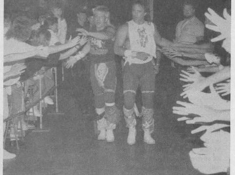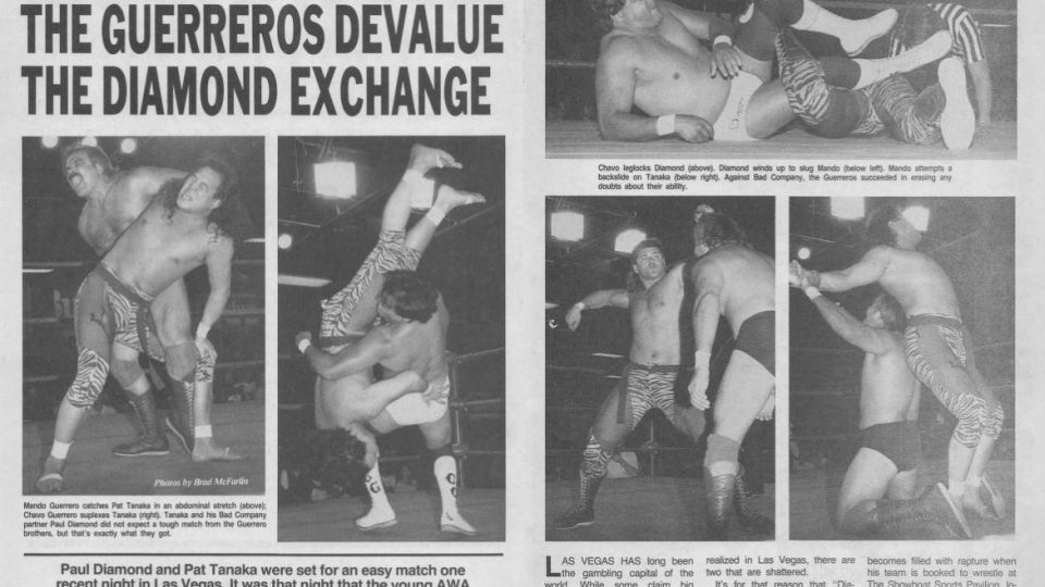 In the AWA, Paul Diamond and Pat Tanaka, aka Bad Company, were set for an easy match one recent night in Las Vegas. It was that night the young AWA tag team champions learned that there is no such thing as an “easy match” in professional wrestling―especially against veteran technicians such as Mando and Chavo Guerrero. “Those oldsters?” thought Bad Company’s manager Diamond Dallas Page upon receiving the contract. “Easy pickings, man. I thought Chavo was retired!” Yet Page’s confidence would soon turn into humiliation. Tanaka and Diamond suffered the worst drubbing of their championship reign at the hands of the Guerreros. In the end, they only retained their title thanks to a disqualification! (I always liked the beginning of Rocky when Rocky keeps bragging about beating Spider Rico, and everyone’s like, “Wait, he’s still around?”)