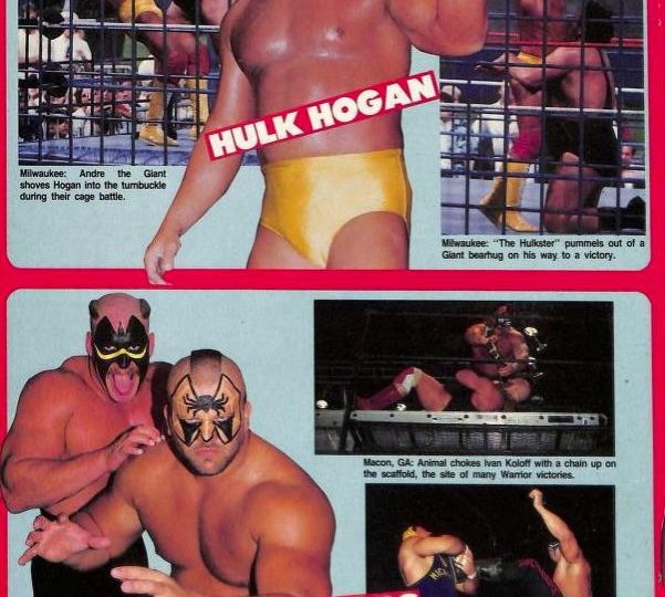 In Milwaukee, Wisconsin, WrestleFest happened on July 31 at Milwaukee County Stadium. (Me, 27,000 fans attended the 15-match outdoor card which featured Hulk Hogan’s return from a three-month layoff. The event featured several recent acquisitions: the Powers of Pain defeated the Bolsheviks, the Big Boss Man defeated Scott Casey, and Curt Hennig defeated Terry Taylor. But it was Ted DiBiase’s match with Randy Savage that stole the show, with the Macho Man successfully defending the WWF title after reversing a small package. The show ended with Hulk Hogan defeating Andre the Giant in a steel cage.