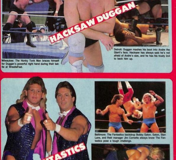 We start proper with Your Letters, the mailbag feature, where Marilyn from Toledo says she’s no longer a fan of the Rougeau Brothers because they have become irritating. In fact, she’d like to see Hacksaw Duggan and the Ultimate Warrior team up to teach those Canadians who’s boss! She concludes by saying the Rougeaus are not fabulous but foolish, and “They don’t love America, they don’t belong in the WWF, and I feel foolish for being taken in by them. America and the WWF would both be better off without them.” Meanwhile, Dwayne from Marystown, Newfoundland sings the praises of Max Pain. “This guy has it all: 350 pounds packed in a 6’6 frame.” (Of course, in a year or two those pounds would start spilling out.) Then there’s Jon from Memphis who says that while Ric Flair and Randy Savage never leave their area, Jerry Lawler is a traveling champion who defends his title all over the world and should be ranked number one in the ratings. “He’s even beaten Savage and Flair in the past! It’s a known fact that Lawler has offered the NWA and WWF champions a rematch for his belt, but Jim Crockett and Vince McMahon denied Lawler those bouts.” We also get a letter from Aresh Homayoun from Potomac, Maryland who says the Midnight Express is the best tag team in wrestling because of Bobby Eaton’s aerial skills, Stan Lane’s martial arts ability, and Jim Cornette’s genius, and it’s only a matter of time before the Midnights beat Tully and Arn for the World tag team championship.