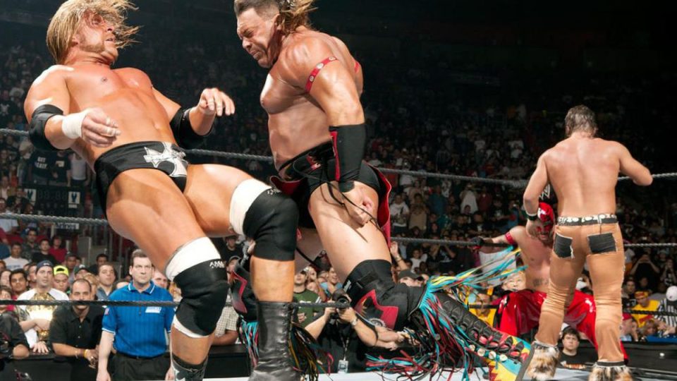 Nitro and Mercury line up to get chopped and knocked down by Tatanka, whilst Benoit nearly manages to eliminate Triple H. Rey hasn’t really done much since those early eliminations, but he does get to do a couple of elimination teases to remind us that he’s still in this.