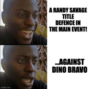 Randy Savage hits the ring and promises to return to face Bravo when they return to Toronto and next time it’s gonna go really badly for Dino and he’s going to get hurt really badly for touching Elizabeth.