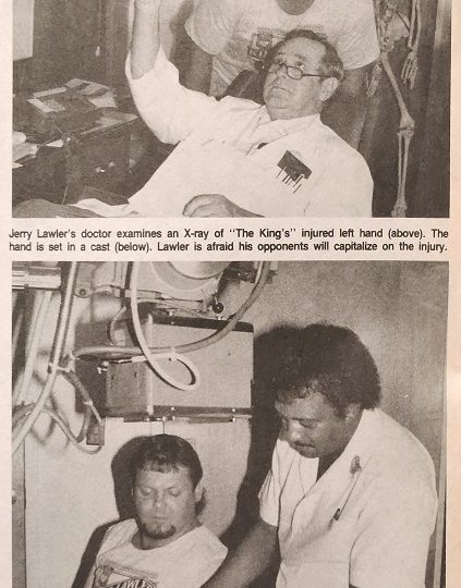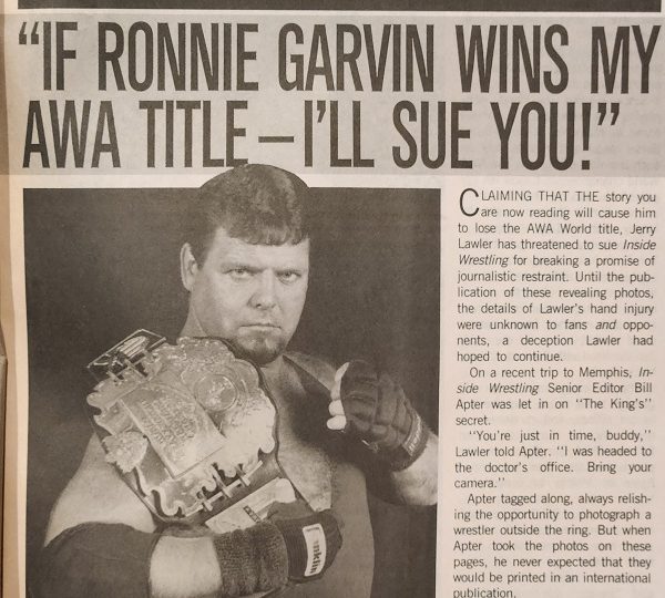 Apter, fearing trouble, phoned Lawler to inform him the magazine wasn’t going to wait on the scoop. “You lied to me, Bill!” yelled Lawler in response. “Do you realize that I might lose the title because of this? I’ve just signed for a series of matches against Ronnie Garvin, and if he knows I can’t rely on my fist and wins the AWA title because of it, I’ll sue you!” Apter says Lawler has a valid concern. Garvin, knowing Lawler’s hand is injured, might very well be able to anticipate Lawler’s every move and know just how to target the AWA champion. Two days after the phone call, Inside Wrestling received a letter from Lawler’s lawyers: