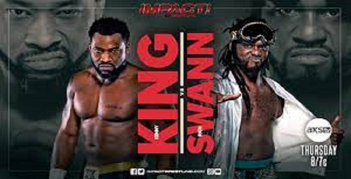 Back with Swann hitting a rolling clothesline into a running kick to the head for two. King hits a spinebuster for two of his own, followed by a powerslam for the same. The poisonrana gets Swann out of trouble and they’re both down for a bit. Swann’s big kick to the head is countered into a half crab to make Swann scream a bit. With that broken up, they trade kicks to the head for two until Swann misses a 450. King grabs a tiger driver for two but the Royal Flush is countered into a small package to give Swann the pin at 14:30.