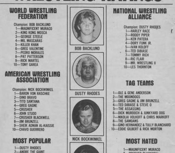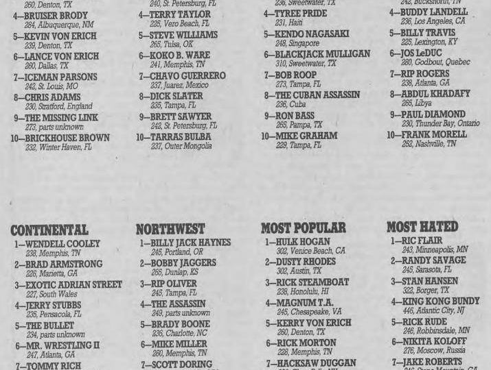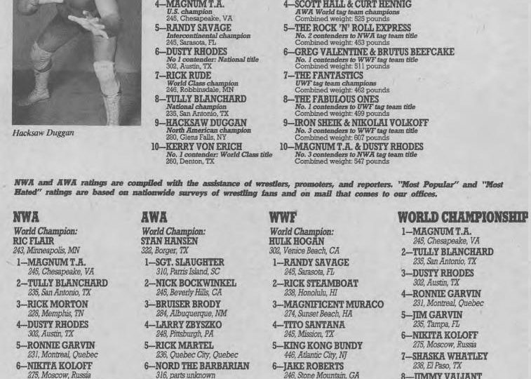 Next, the ratings from the August, 1986 issue of The Wrestler… which only includes one wrestler from the above cover. (Hint: he comes in at number 10 somewhere.)