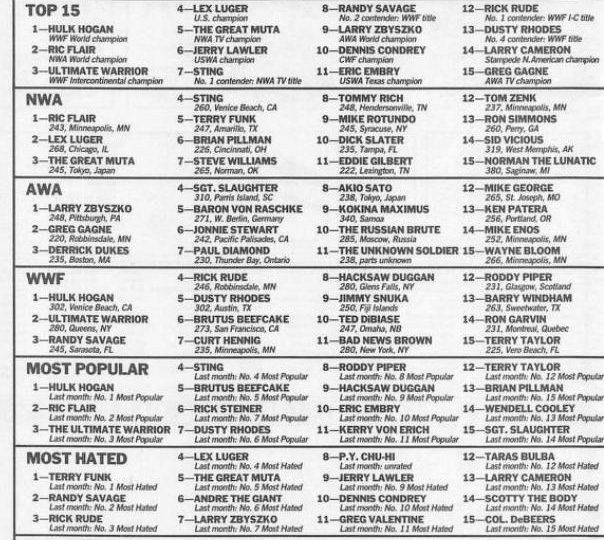 Up next, the ratings from the January, 1990 issue of Inside Wrestling: