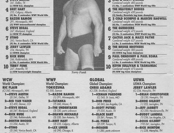 Next, here are the ratings from The Wrestler’s January, 1994 issue: