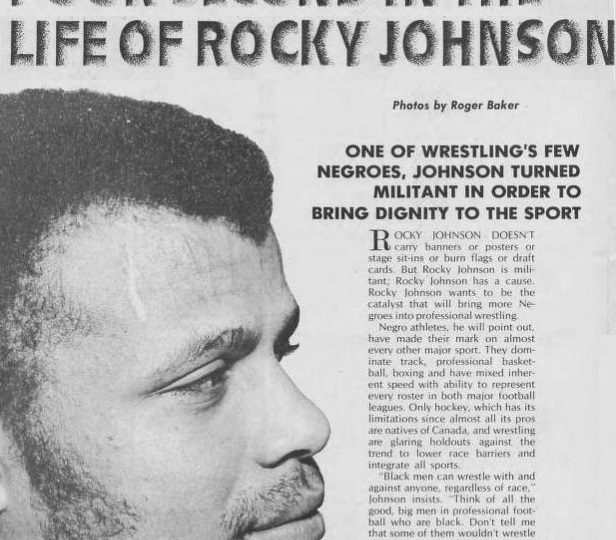 Next, in the July, 1969 issue of Inside Wrestling, we learn about “one of wrestling’s few negroes” who has turned militant. Rocky Johnson says he hopes to blaze a path that brings more blacks into the sport.