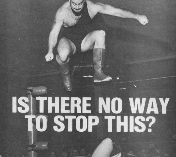 Next, an article from the February, 1975 issue of The Wrestler, which laments that wrestlers are increasingly jumping from the top rope, which is illegal and can seriously injure an opponent.