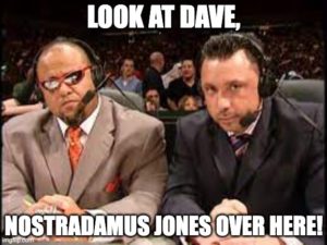 – Dave thinks it was probably OK’d by USA because they didn’t edit it off the West Coast replay, and really they’re just as desperate as the WWF to improve ratings.