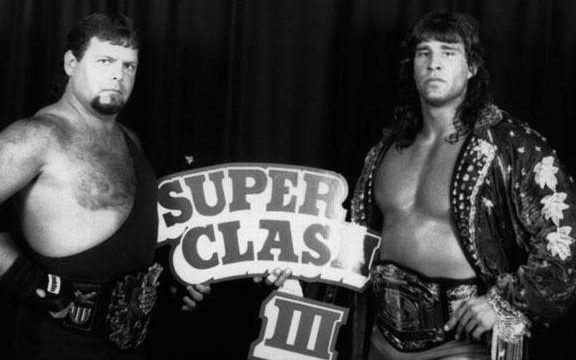 JWBraun: What a murderers’ row on the heel side! Andre, former WWF champion, Race, former NWA champion, Hennig, former AWA champion, Rude, former World Class champion, and Bravo, former Canadian international heavyweight champion.