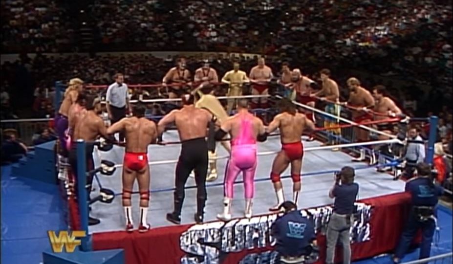 Jake Roberts, Jim Duggan, Scott Casey, Tito Santana & Ken Patera v. Dino Bravo, Andre the Giant, Harley Race, Ravishing Rick Rude & Mr. Perfect